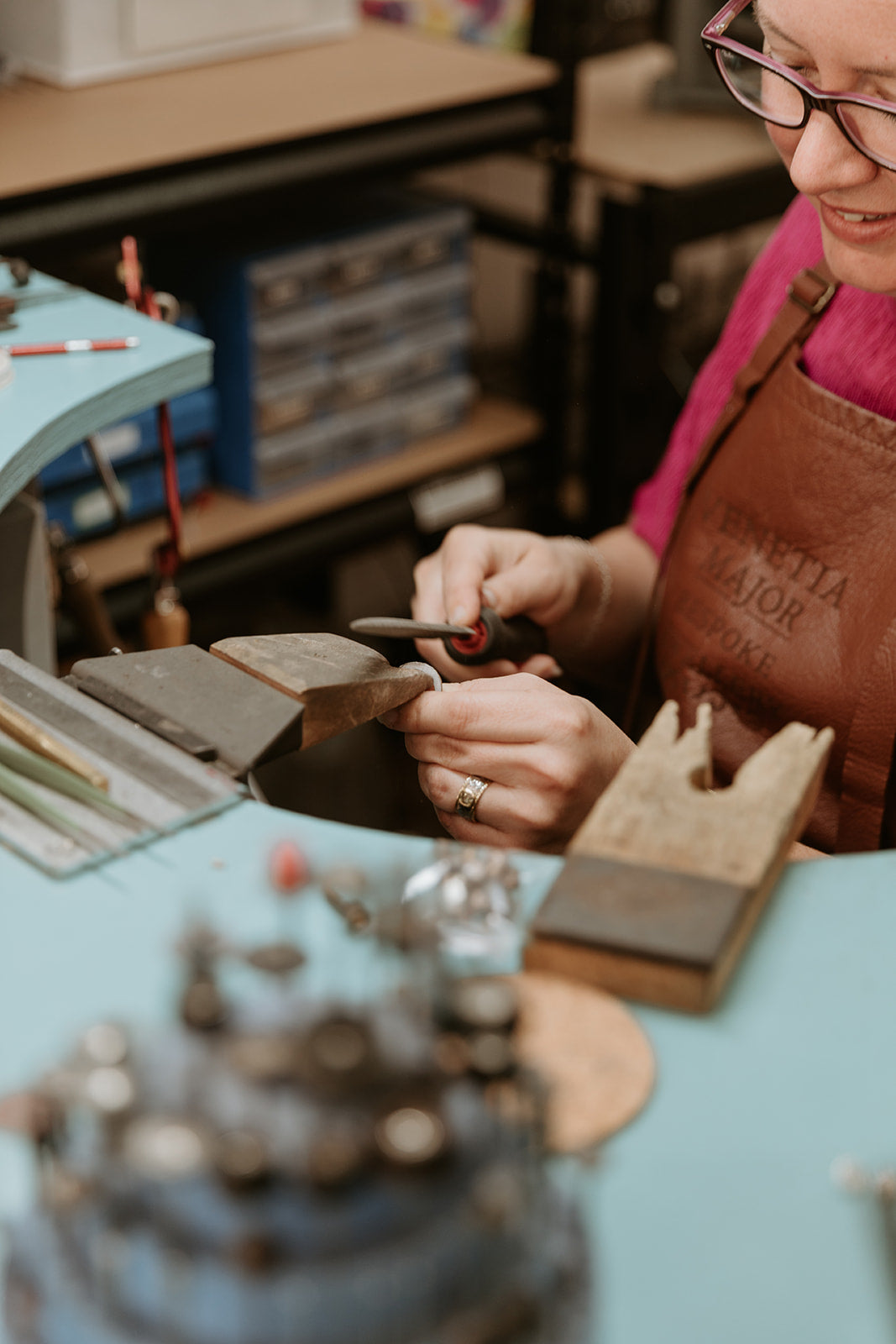 “Visit me in the studio for a relaxed design or repair consultation where we can discuss all of your options. I will work with you to unearth what you do and don’t want and create a beautiful design just for you that you will love! It would be my privilege to be your jeweller of choice.”